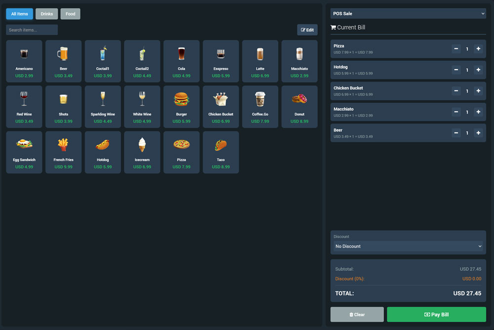 POS and Bills: sell add-ons and close out faster.